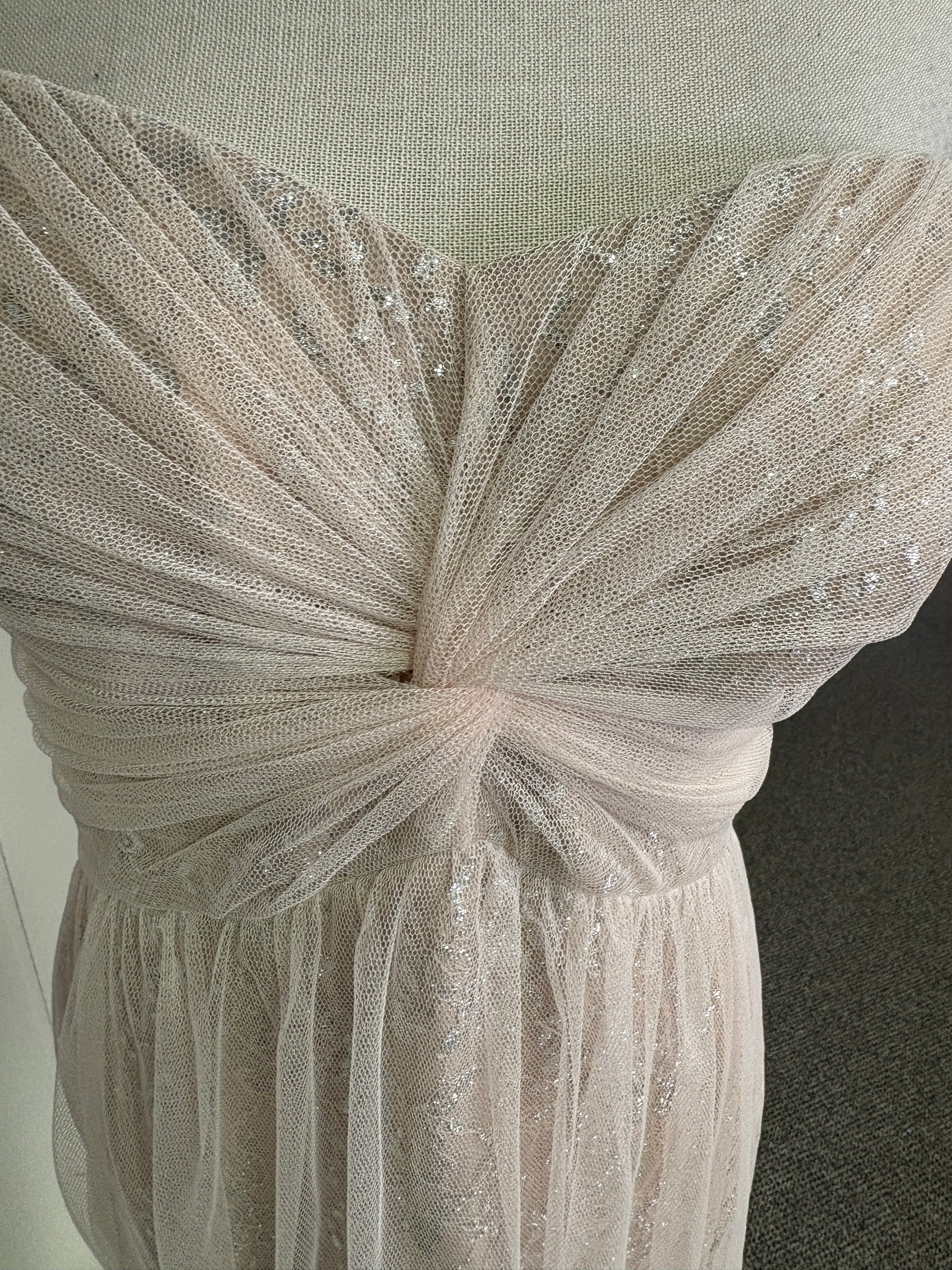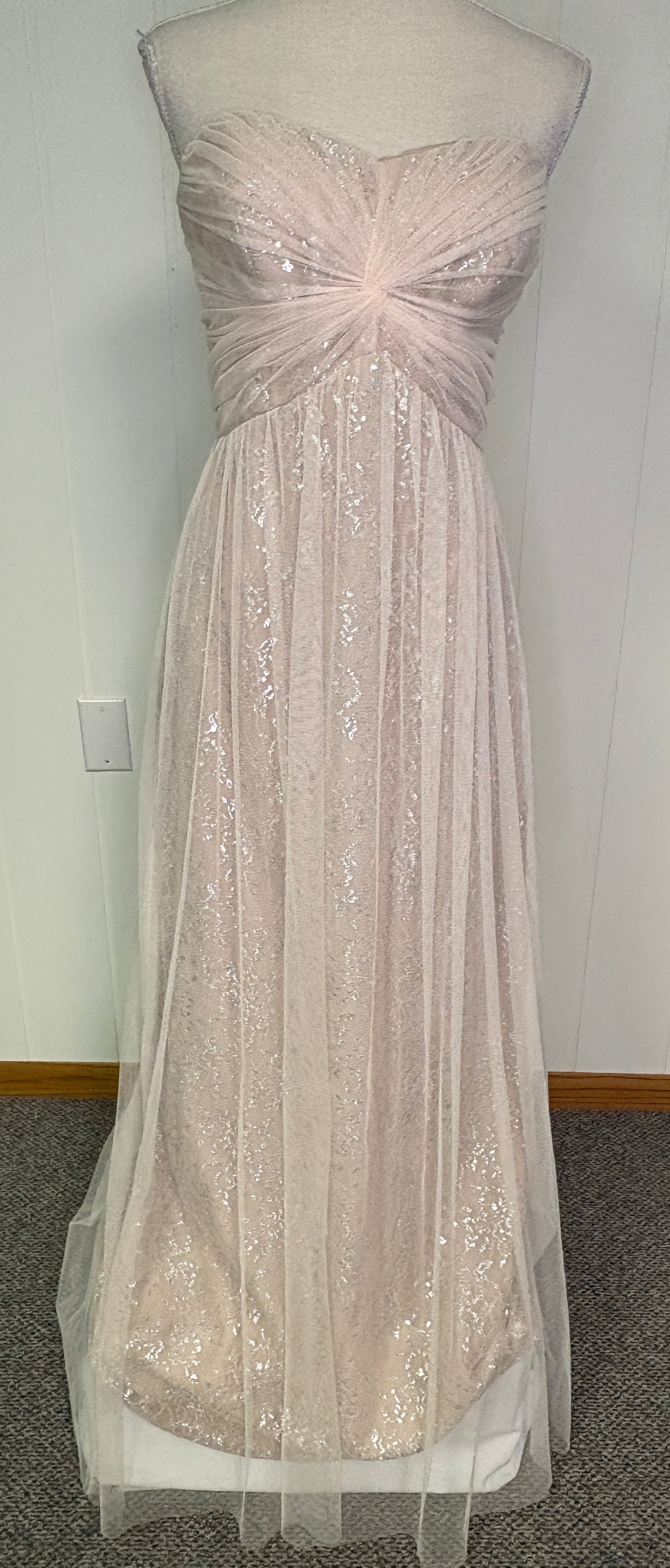 Description : Formal Dress Mesh Overlay Strapless